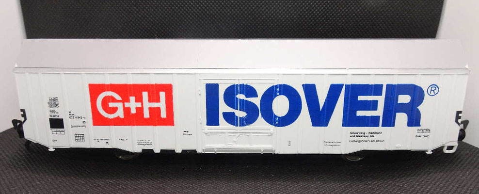 Gedeckter Güterwagen ISOVER der Firma Grünzweig + Hartmann AG, LüP = 192 mm.